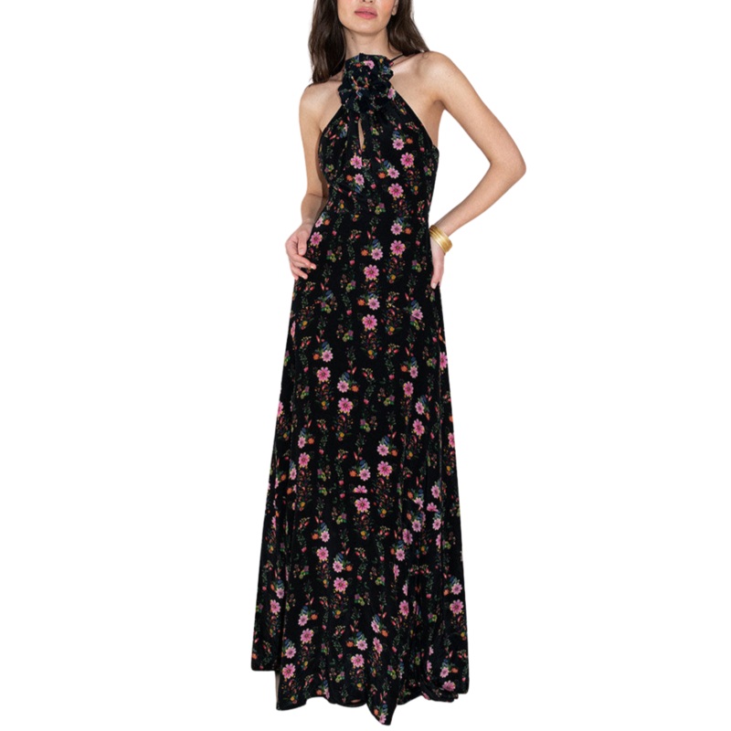 Inspired by the great art museums of the world, Carmen Borgonovo and Joana de Noronha use romantic silhouettes and surreal, bespoke prints, to create dresses that not only empower women, but transport them. These versatile, tailored pieces will bring joy to your wardrobe, and glamour to your world. With slinky criss-crossing straps and a sumptuous floral print, the Rosie Crepe Maxi Dress in Sierra Jungle Black is an easy go-to number for any occasion that calls for a flowing floor-length dress.